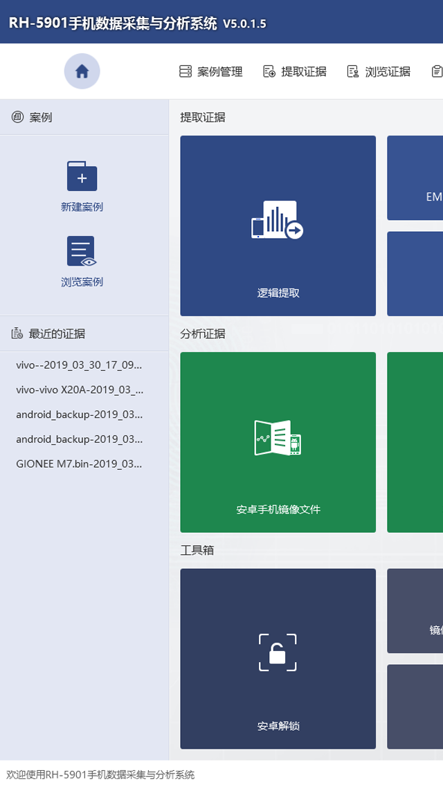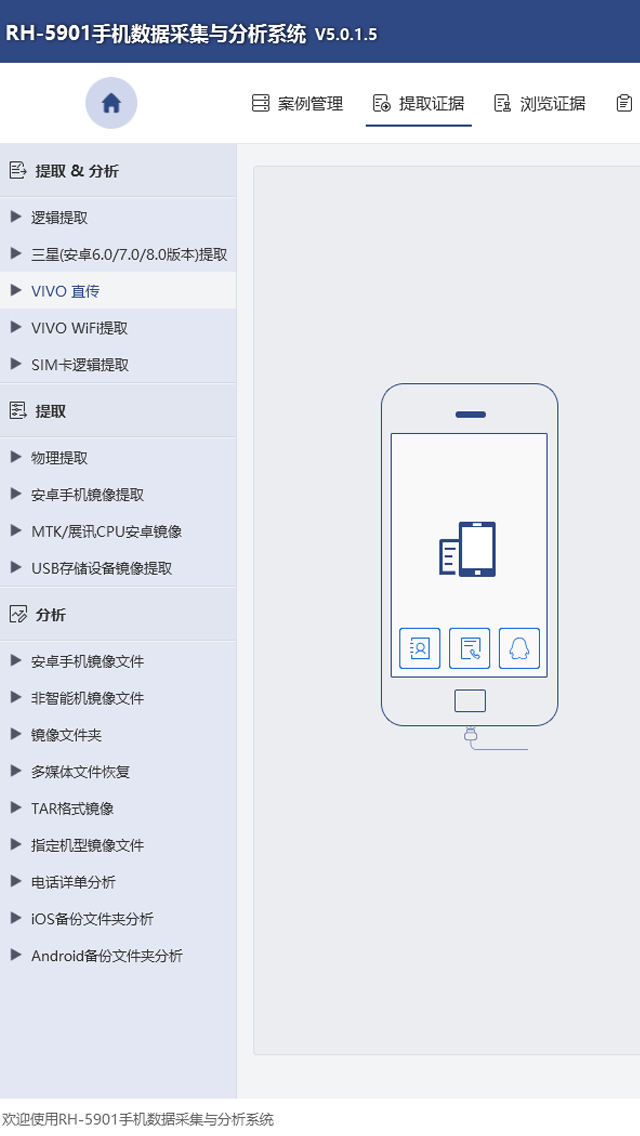 RH-5901是一套可應(yīng)用于各種品牌的Android系統(tǒng)手機(jī)、IOS系統(tǒng)各版本及型號(hào)的手機(jī)、各種品牌和山寨功能機(jī)、EMMC物理提取的的手機(jī)數(shù)據(jù)綜合提取分析系統(tǒng)。系統(tǒng)內(nèi)置國(guó)產(chǎn)手機(jī)鏡像提取、EMMC數(shù)據(jù)物理提取、智能終端數(shù)據(jù)分析、手機(jī)SIM卡/存儲(chǔ)卡數(shù)據(jù)分析等多個(gè)功能模塊。